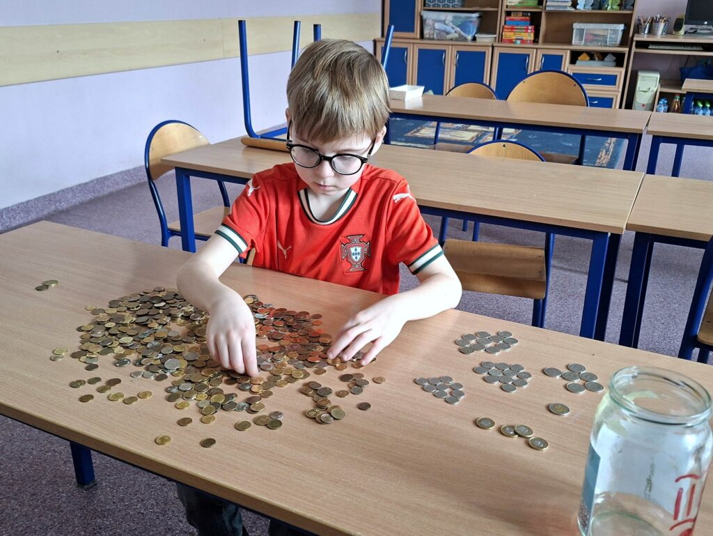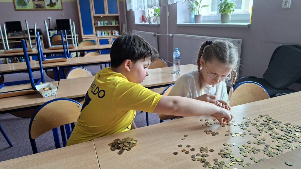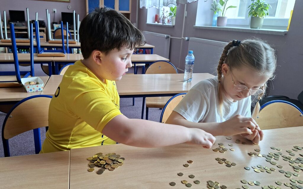 W marcu uczniowie wraz z opiekunkami liczyli grosiki, zaś odpowiednio posegregowane