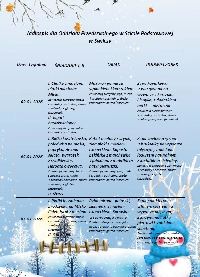 Jadłospis od 02.01.26 do 09.01.26
