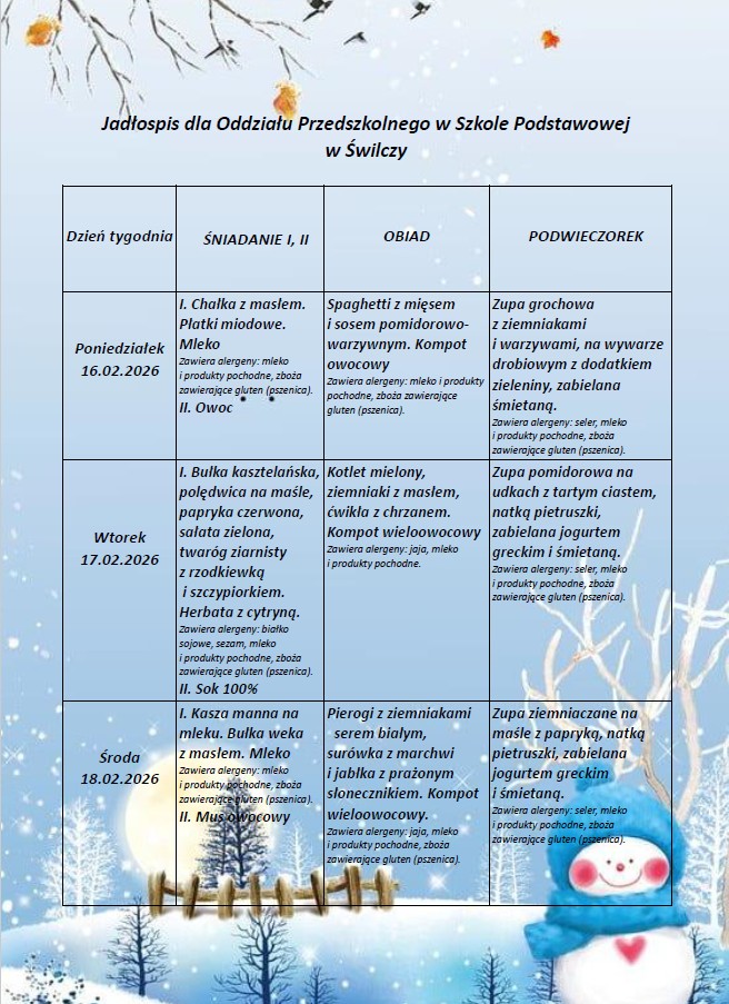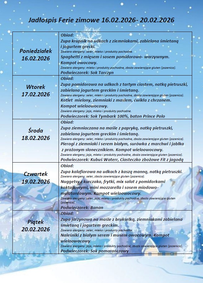 Jadłospis od 16.02.26 do 20.01.26