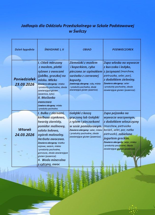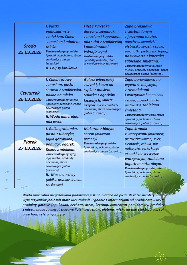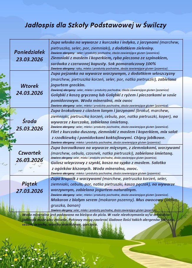 Jadłospis od 23.03.26 do 27.03.26