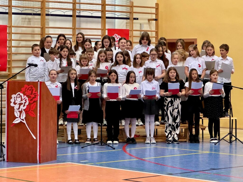 Przemówienia przypomniały trudną oraz długą drogę do wolności naszej Ojczyzny. 11 listopada 1918 r. Polacy po latach zaborów, rozbicia i cierpienia znów mogli mówić: „To jest nasza Ojczyzna!”. Tylko dzięki wierze Polska przetrwała rozbiory, wojny i czasy zniewolenia. Dzięki odwadze ludzi, którzy często bez broni, ale z niezłomnym duchem, walczyli o prawo do bycia wolnym narodem. Cyprian Kamil Norwid mówił: „Ojczyzna to wielki zbiorowy obowiązek.” Należy pamiętać, że ten obowiązek dziś nie polega już na walce z bronią w ręku, ale na trosce o drugiego człowieka, o prawdę, o pamięć i o wspólne dobro. To w codziennych wyborach – w uczciwości, solidarności i wzajemnym szacunku rozgrywa się prawdziwa miara naszego patriotyzmu. Dziś żyjemy w wolnym kraju. Możemy uczyć się, mówić po polsku, rozwijać się i realizować marzenia. Ale musimy pamiętać, że ta wolność została okupiona krwią, cierpieniem i wielkim poświęceniem. Nie wolno nam o tym zapomnieć. Jak powiedział Józef Piłsudski – człowiek, którego nazwisko nierozerwalnie wiąże się z odzyskaniem niepodległości: „Naród, który traci pamięć, przestaje być narodem staje się jedynie zbiorem ludzi, czasowo zajmujących dane terytorium.”