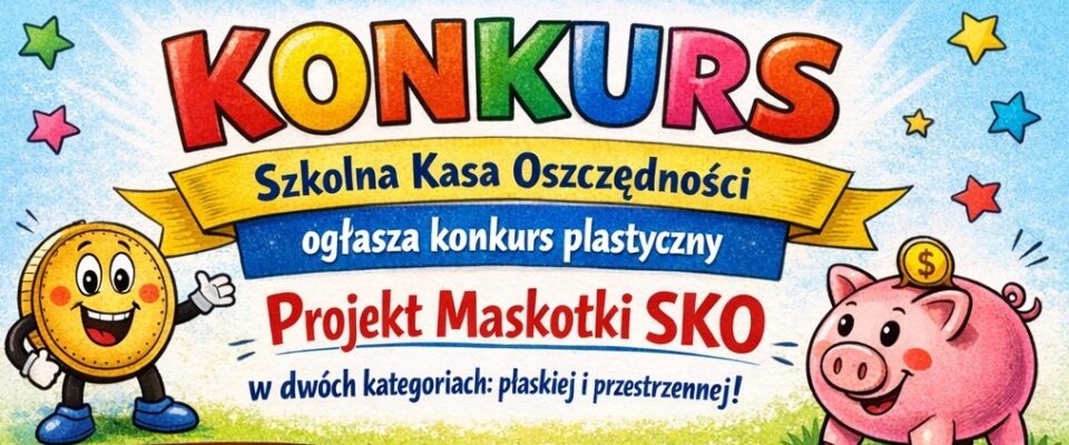 Szkolna Kasa Oszczędności ogłasza konkurs plastyczny na wykonanie projektu maskotki organizacji w dwóch kategoriach: płaskiej i przestrzennej.