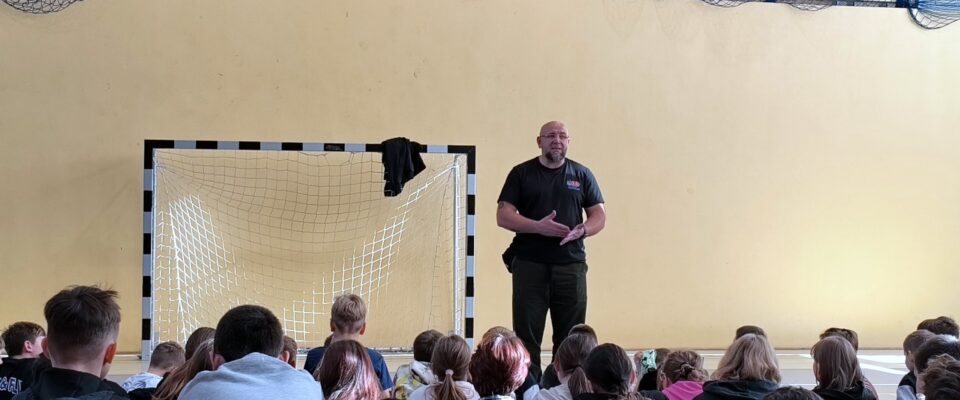 W dniu 27 października 2025 r. w naszej szkole odbyło się spotkanie z przedstawicielem Policji, panem Tomaszem Surowiakiem, poświęcone hejtowi w Internecie, używaniu wulgaryzmów wśród dzieci i młodzieży oraz bezpieczeństwu w sieci.
