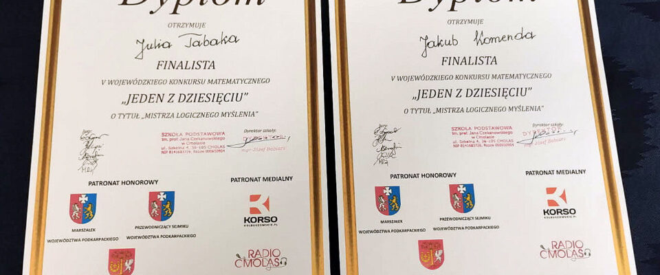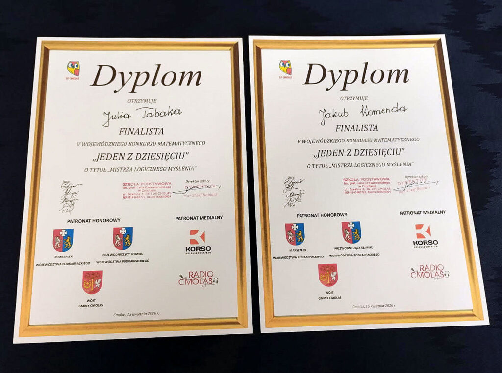 Mamy powody do dumy! 15 kwietnia 2026 roku dwoje uczniów naszej szkoły wzięło udział w wielkim finale V Wojewódzkiego Konkursu Matematycznego „1 z 10” o prestiżowy tytuł „Mistrza logicznego myślenia”.